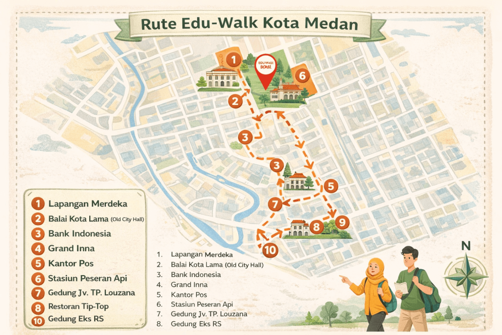Edu-Walk menghadirkan panduan rute dan aktivitas singkat di setiap titik bersejarah Kota Medan.